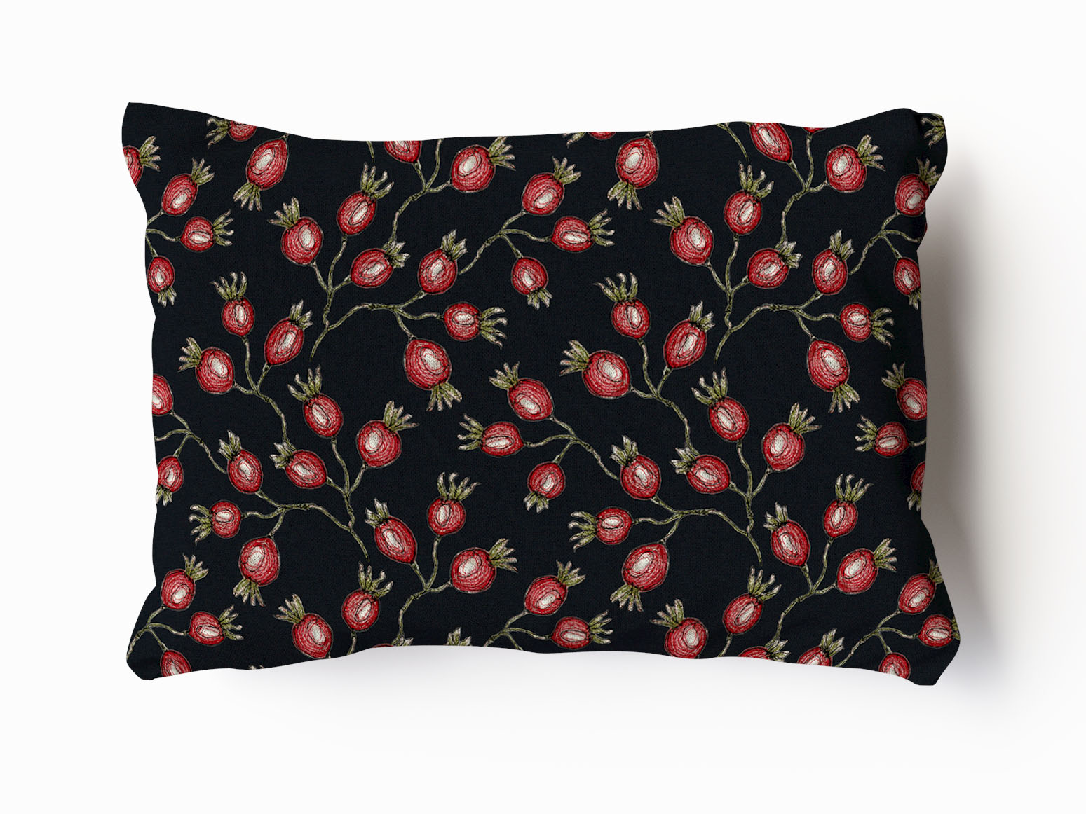 Midnight Rose Hips Velvet and Cotton Cushion